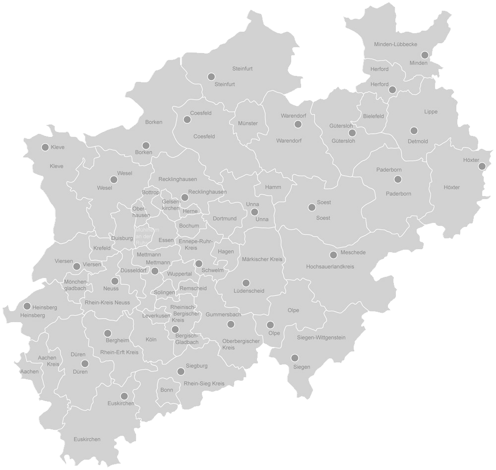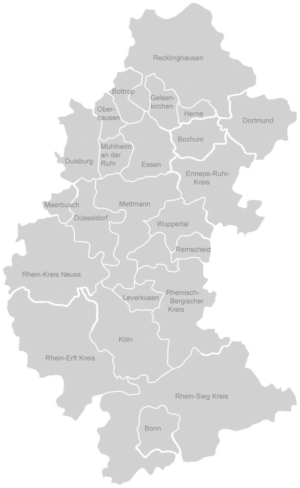 Unsere Dienstleistungen bieten wir u.a. in den Städten Köln, Düsseldorf, Essen, Dortmund sowie weiten Teilen des Ruhrgebietes und des Rheinlandes an.